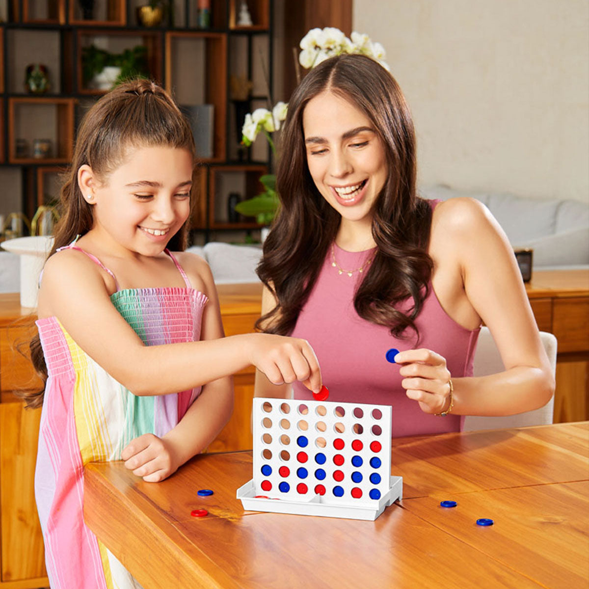 tablero 4 en línea. juego de mesa para dos jugadores. contiene 21 fichas azules, 21 fichas rojas y base de plástico. el objetivo es alinear cuatro fichas sobre un tablero formado por seis filas y siete columnas. por turnos, los jugadores deben introducir una ficha en la columna que prefieran (siempre que no esté completa) y ésta caerá a la posición más baja. gana la partida el primero que consiga alinear cuatro fichas consecutivas de un mismo color en horizontal, vertical o diagonal. consulte el instructivo para abrir y cerrar el tablero.