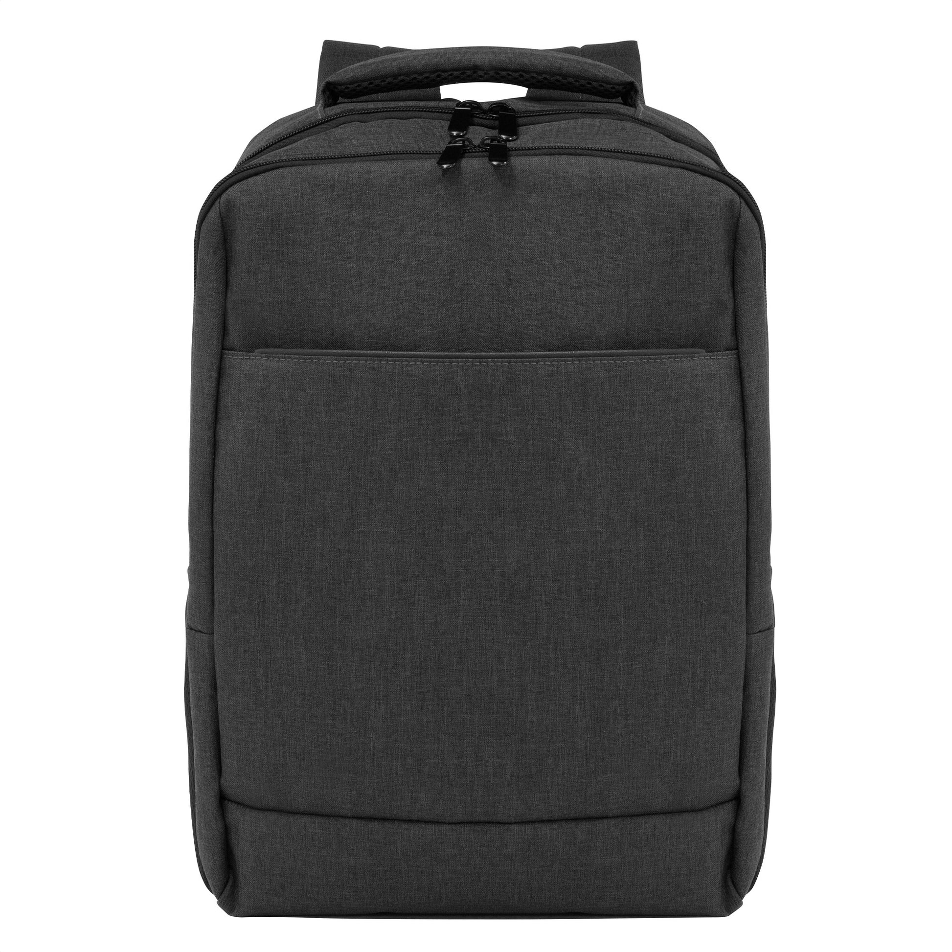 viaja ligero y organizado.mochila portanotebook de hasta 16 pulgadas. cuenta con dos compartimentos, el compartimento principal con bolsillo acolchado para la notebook y el compartimento frontal con bolsillo pequeño. frente con bolsillo horizontal con cierre y dos bolsillos laterales de malla porta botellas y accesorios. asa superior, correas y respaldo acolchados. correas ajustables. tira para sujetar la mochila en la manija extensible de un equipaje de mano. tiradores de cierres metálicos color negro.