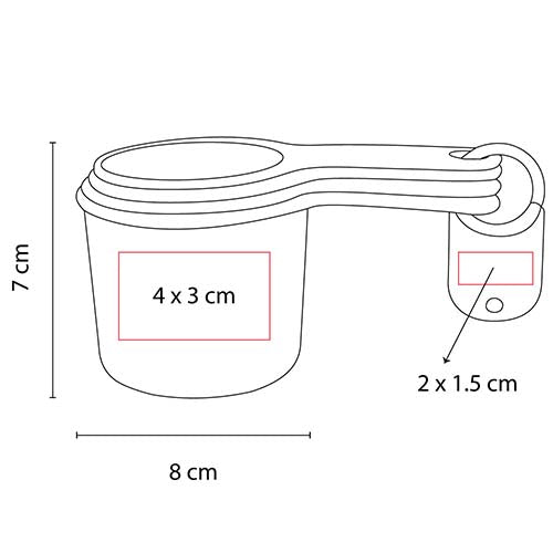 set de 4 tazas medidoras. incluye las medidas: 1 taza, 1/2 taza, 1/3 taza y 1/4 taza. incluye placa plástica para impresión.