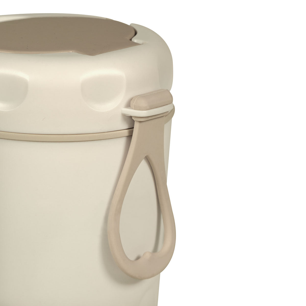 contenedor de alimentos con interior de acero inoxidable, perfecto para conservar la temperatura de los alimentos por más tiempo. su tapa de rosca garantiza un sellado hermético, evitando derrames indeseados durante su transporte. además, incluye una cuchara plegable, misma que se guarda en un compartimento integrado en su tapa. con un diseño compacto, este contenedor es ideal para llevar tus alimentos de manera fácil y sin complicaciones. apto para el uso en lavavajillas. no apto para uso en microondas.