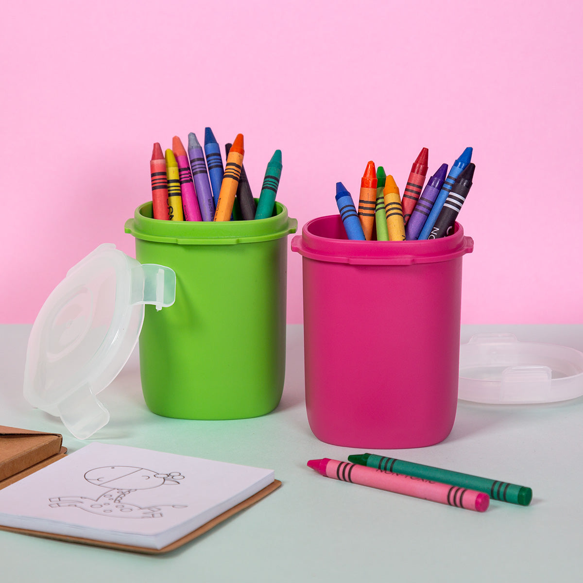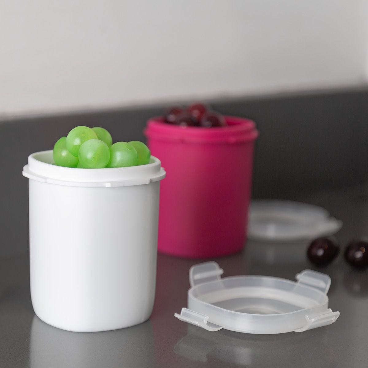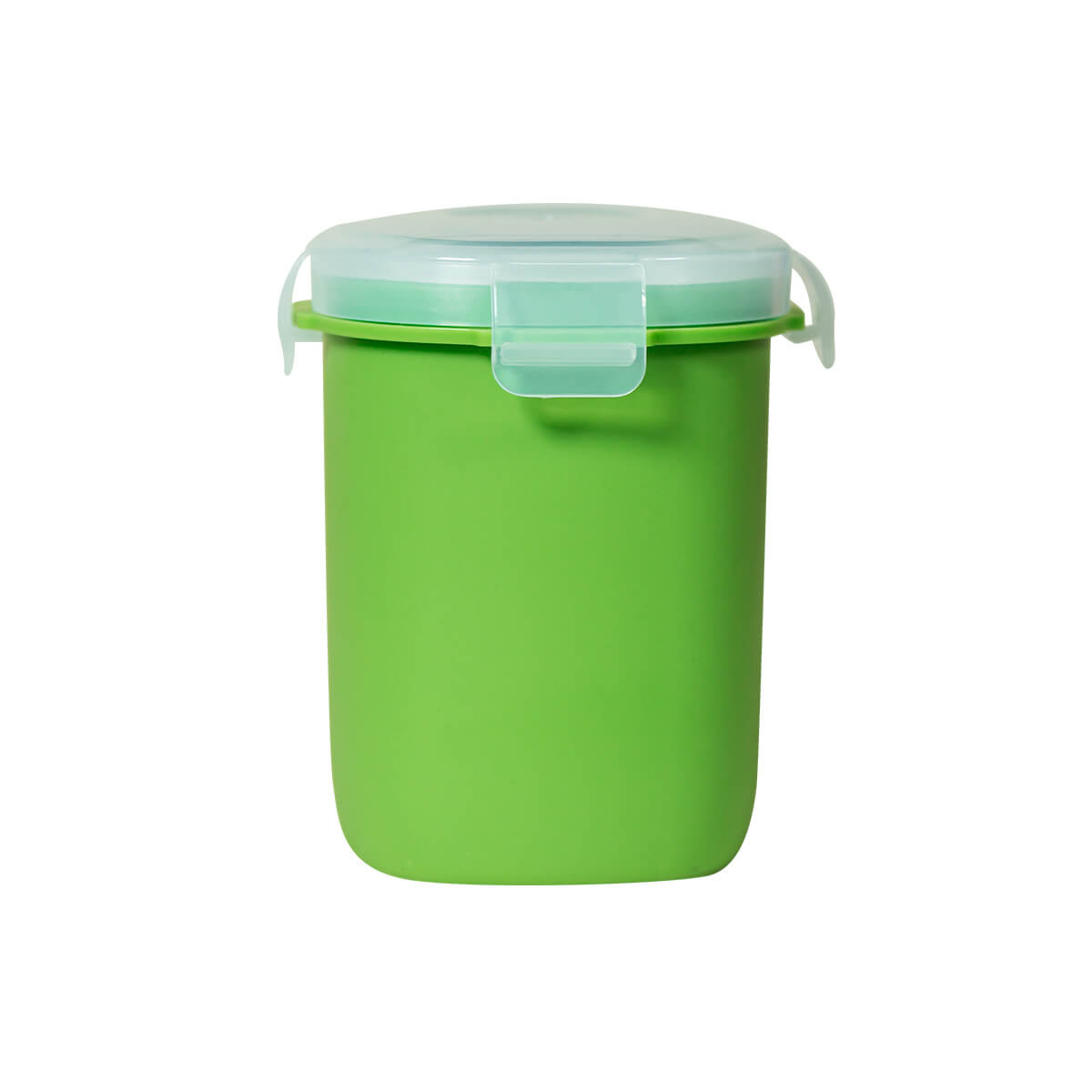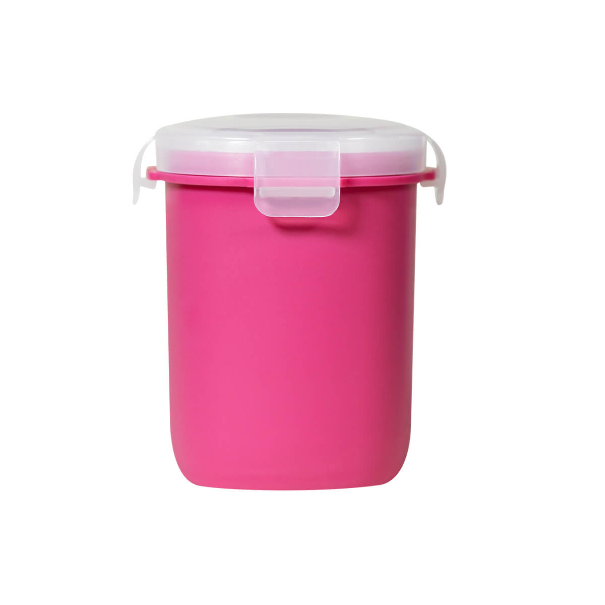vasito contenedor de plástico con tapa con cuatro pestañas y sello hermético para evitar derrames. compacto y versátil, es perfecto para llevar tus snacks sin preocupaciones.