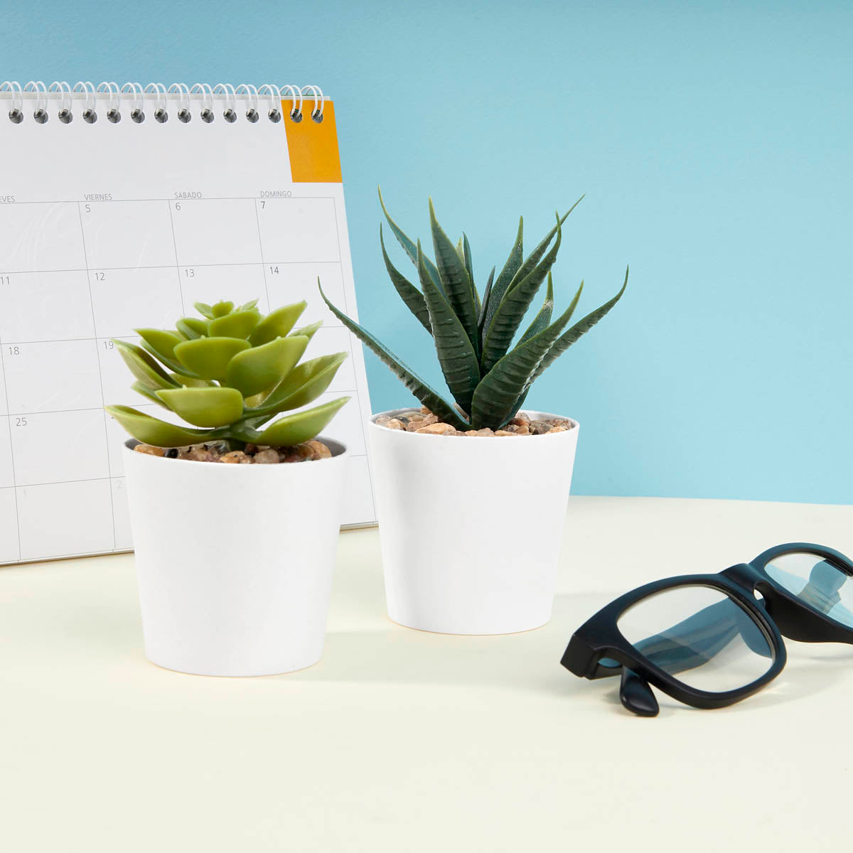 incluye dos mini macetas con planta artificial. crea un ambiente acogedor y lleno de vida en tu sala de estar, dormitorio o incluso en tu espacio de trabajo, decorando con frescura y estilo sin importar la temporada. incluye caja de regalo ecológica.
