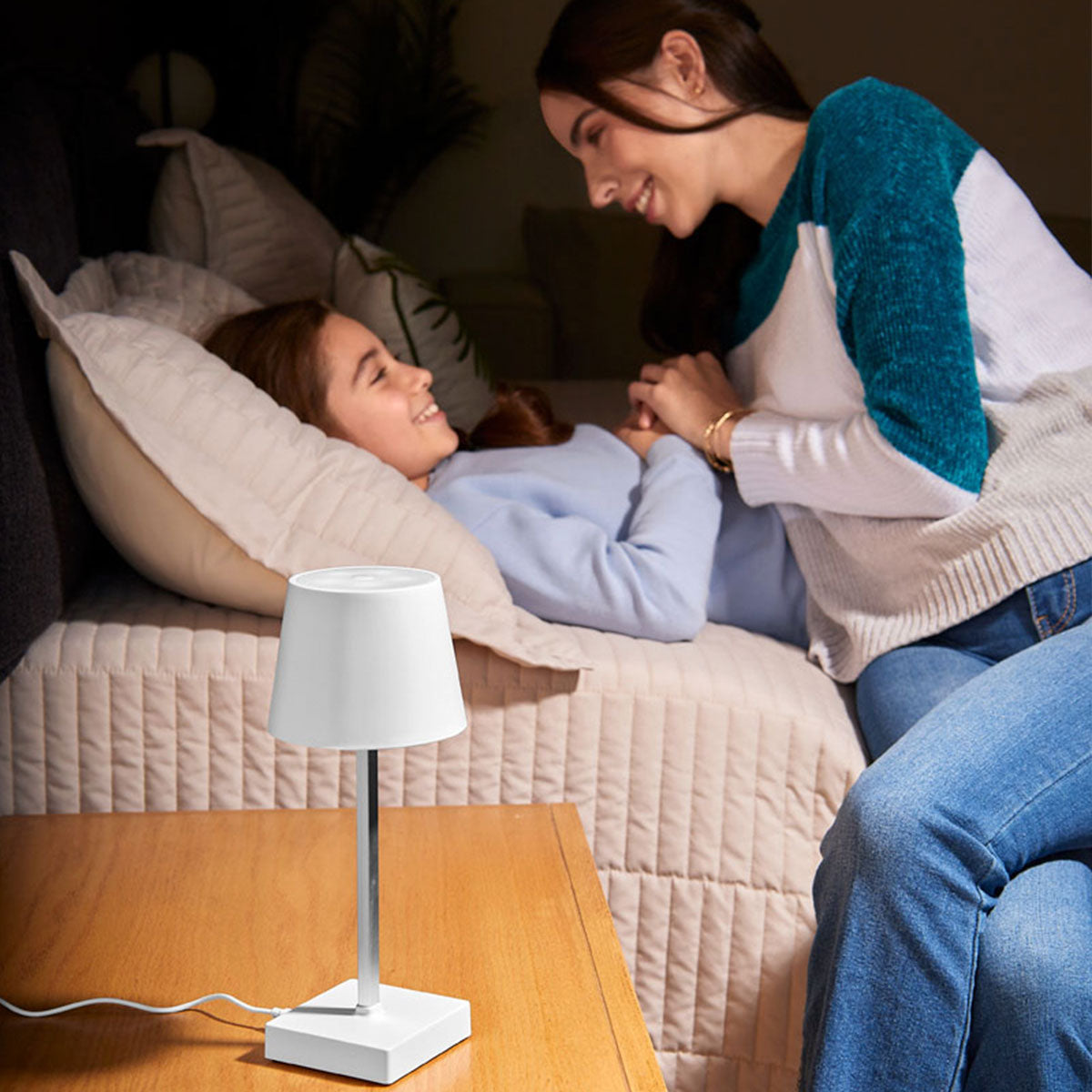 lámpara de mesa equipada con tecnología led de bajo consumo energético. botón táctil con 3 intensidades de luz ajustables, puedes personalizar la iluminación según tus necesidades. brinda una luz suave y cálida para momentos de relajación hasta una luz más brillante para tareas que requieren mayor atención. proporciona una iluminación brillante y nítida. incluye cable auxiliar usb. (requiere estar conectada para funcionar.)