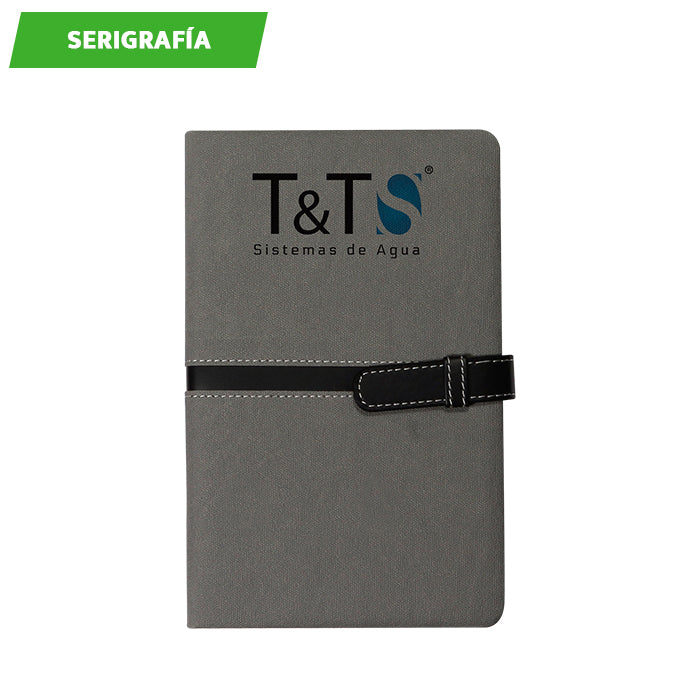 libreta cubierta en curpiel pasta rígida con 80 hojas de raya y separador. tamaño a5.
