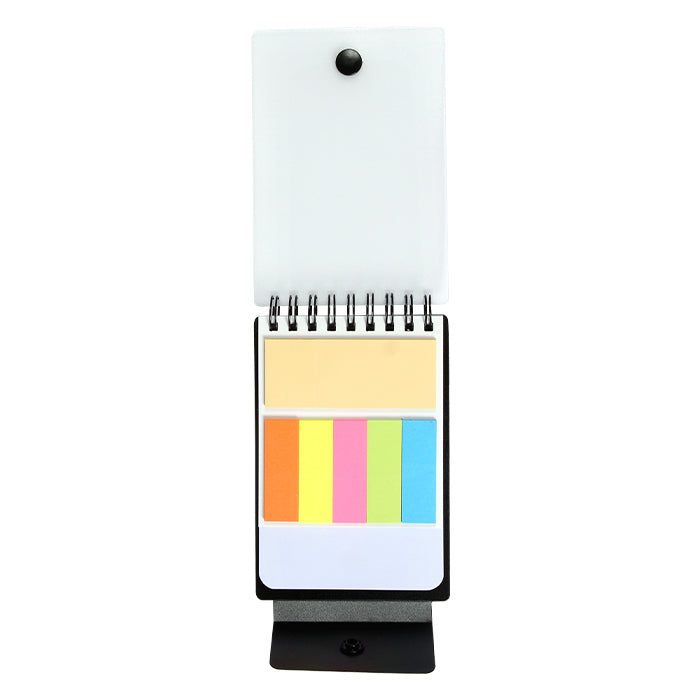 libreta con pasta plástica 150 hojas rayadas y banderines adheribles.