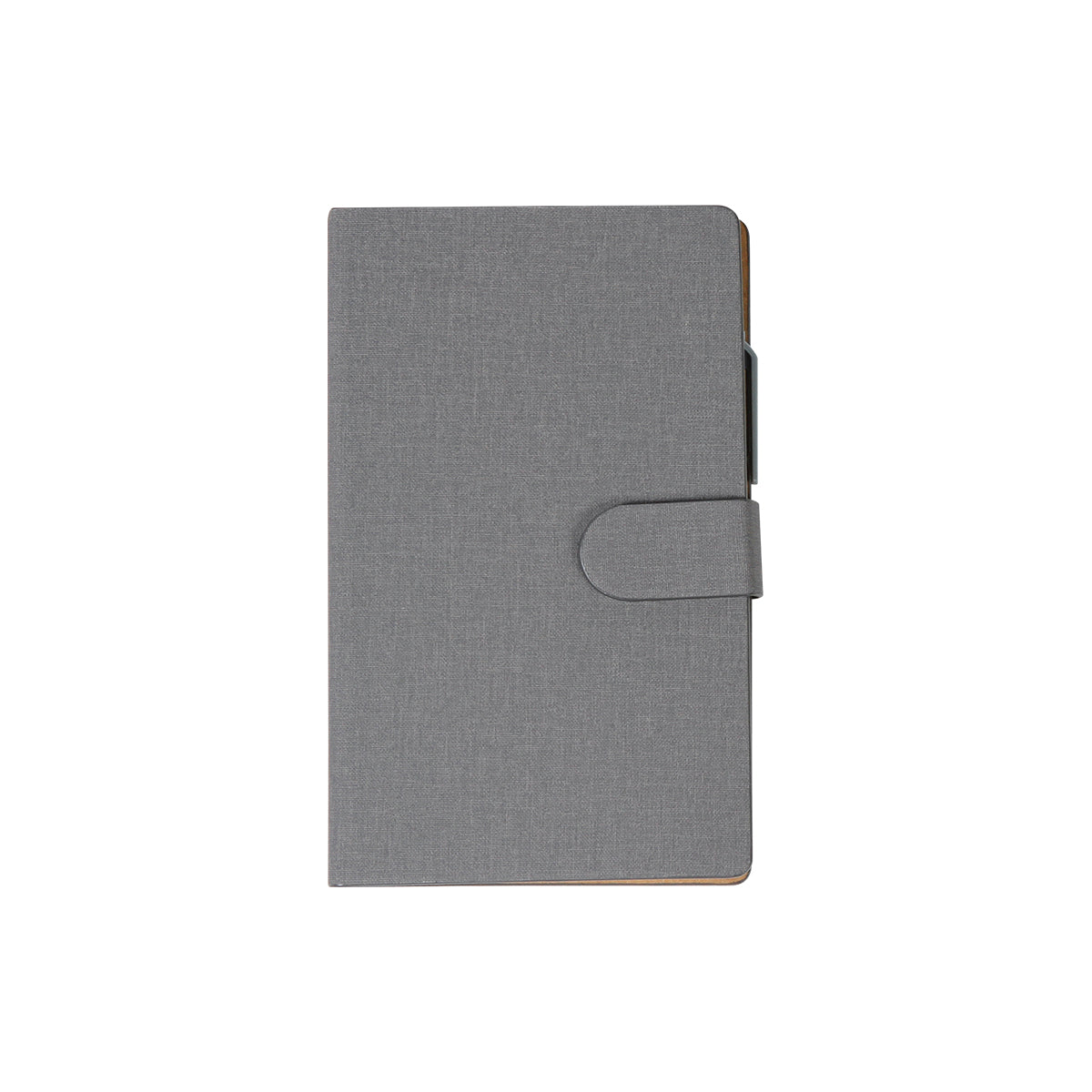 libreta cubierta en curpiel con 70 hojas de raya, notas, banderines adheribles, bolígrafo tinta negra y broche de seguridad.