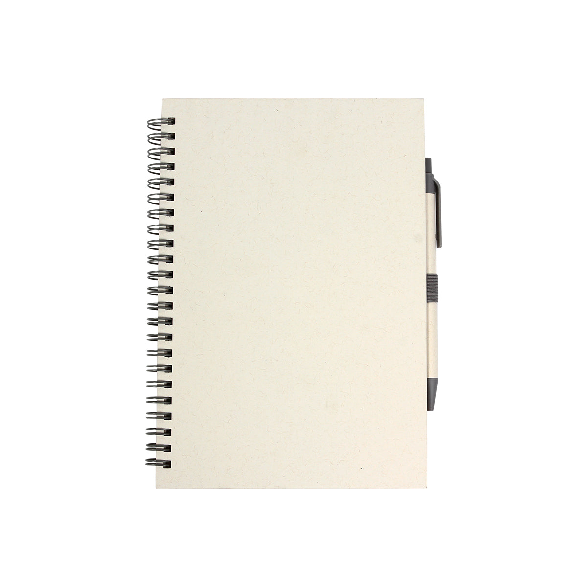 libreta fabricada en milk paper (cartones de leche reciclados) con espiral metálico, banda elástica porta bolígrafo y bolígrafo con barril de milk paper y detalles en plástico pla. 70 hojas rayadas de 80 gr. tamaño a5. el papel de alta calidad asegura una escritura suave y legible, mientras que las líneas rayadas ayudan a mantener tus notas organizadas y ordenadas.