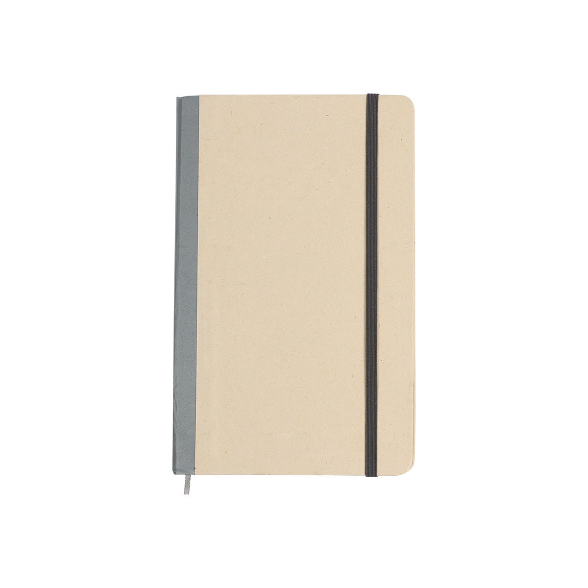 libreta con cubierta en papel de caña de azúcar combinado con cartón con tela de encuadernación con banda elástica. hojas de papel de caña de azúcar de 80g., con 80 hojas rayadas con esquina redondeada.