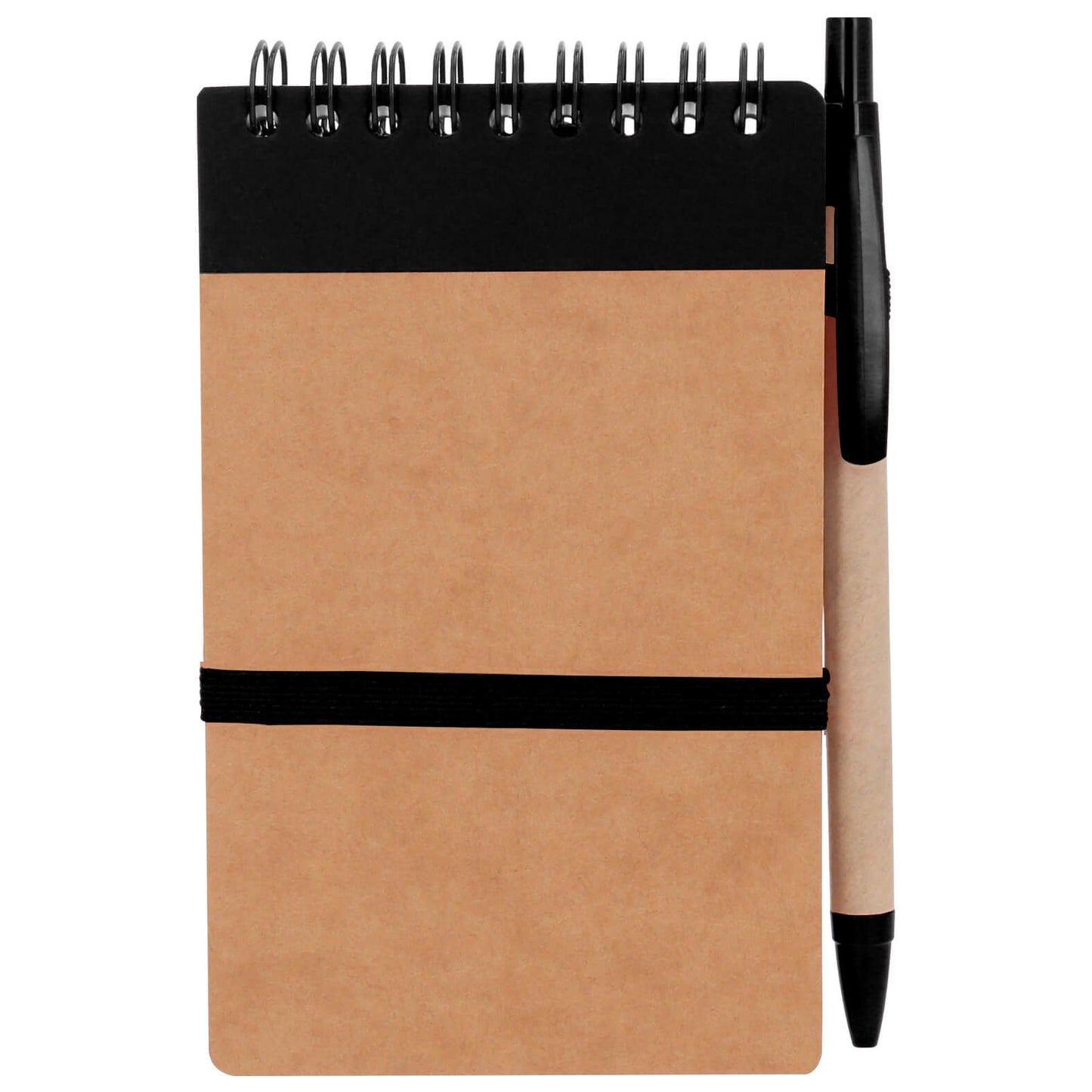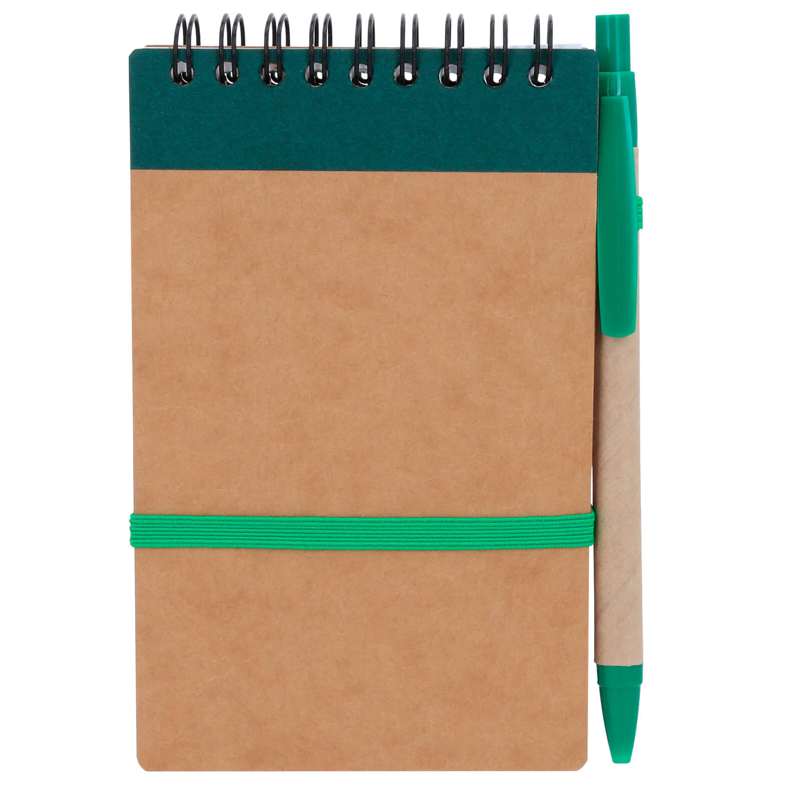 libreta pocket de papel reciclado y bolígrafo, incluye: 70 hojas rayadas.
