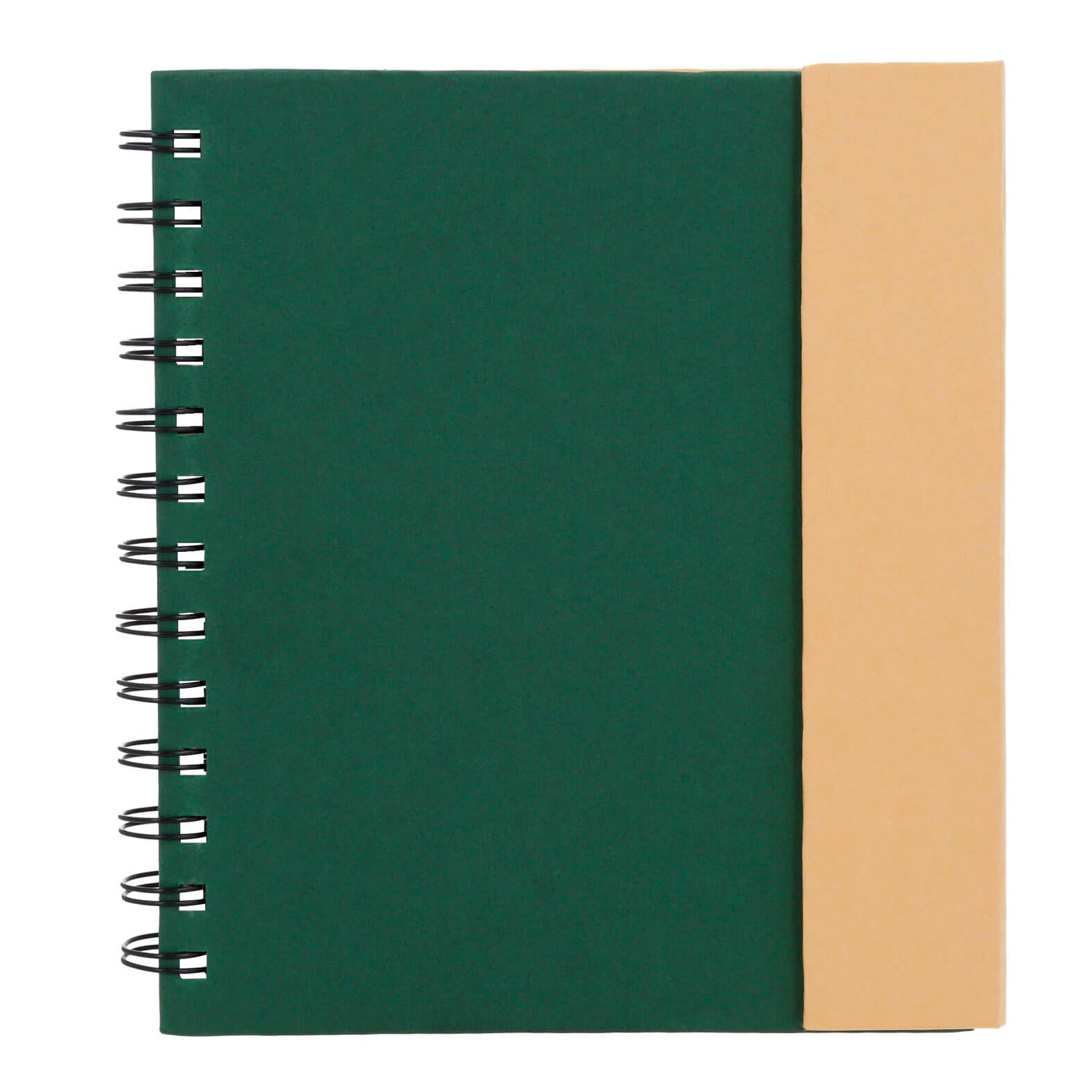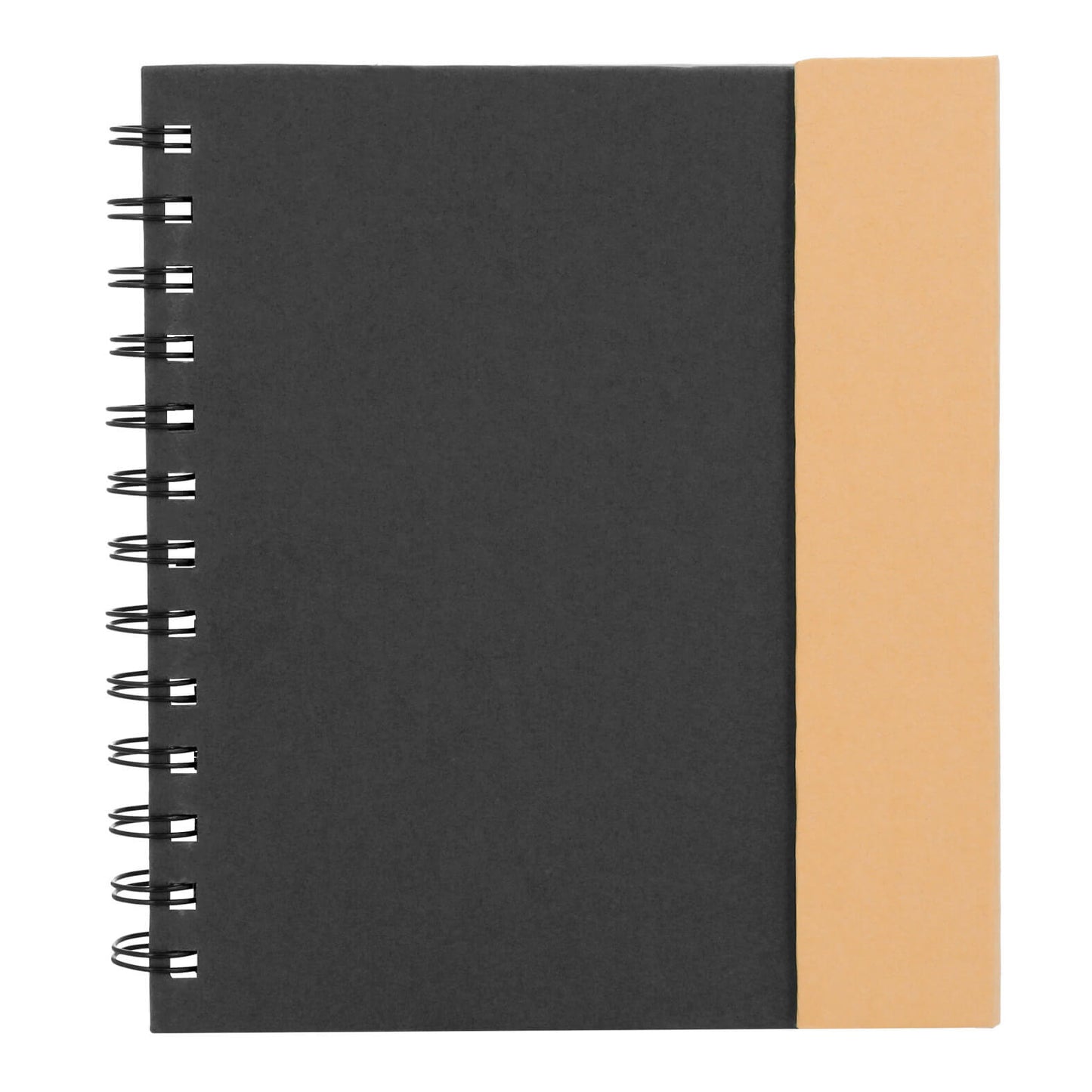 libreta ecológica de cartón con espiral, cierre magnético. incluye 5 líneas de banderas adhesivas y dos blocks de notas rectangulares, 70 hojas rayadas y bolígrafo ecológico de cartón reciclado.