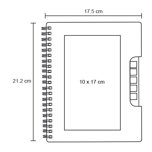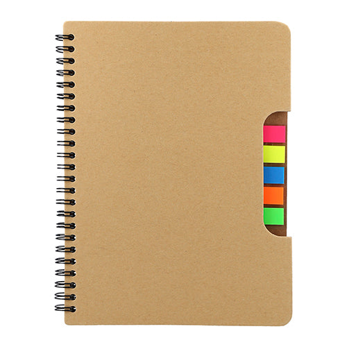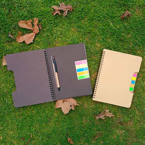 libreta ecológica con 5 tiras de banderas adheribles y bolígrafo, cuenta con 80 hojas rayadas.