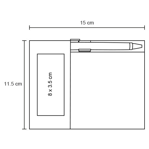 block de notas ecológico con 100 hojas blancas, notas adhesivas y bolígrafo.