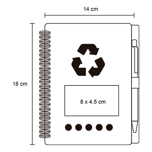 libreta ecológica de corcho con espiral, bolígrafo y 70 hojas de raya.
