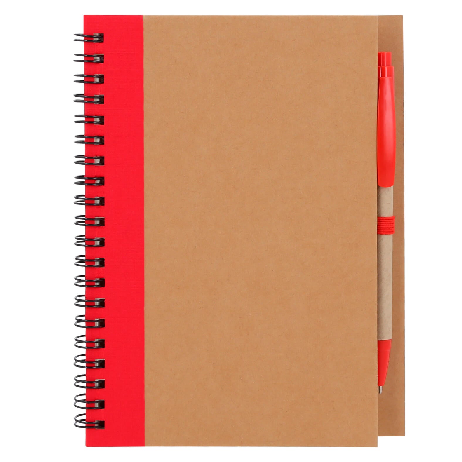 libreta de papel reciclado con bolígrafo, incluye: 70 hojas rayadas.