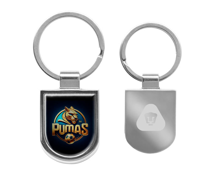 llavero metálico en forma de escudo con arillo reforzado. por su bajo relieve se pueden hacer aplicaciones en gota de resina. presentación: caja individual de cartón.