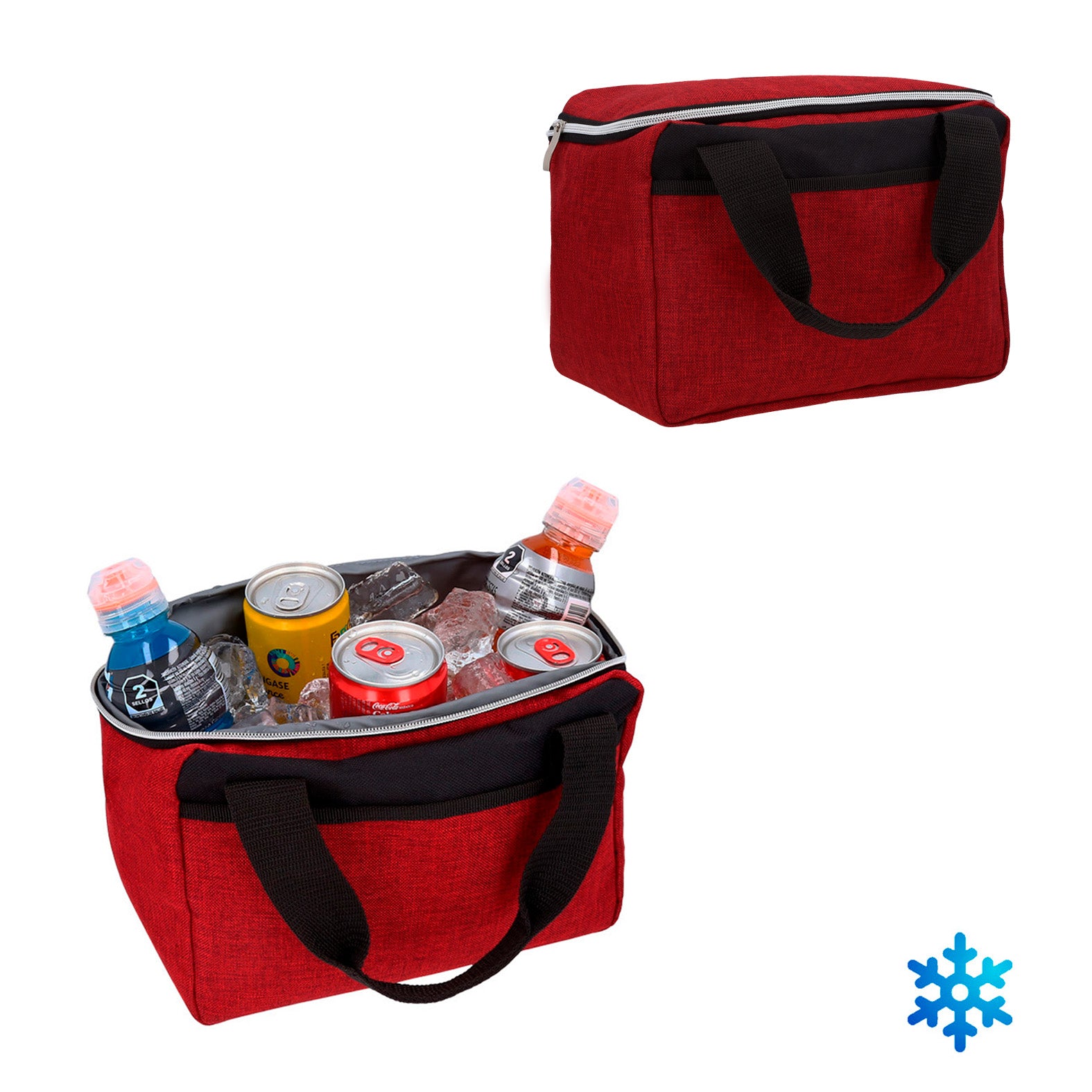 hielera con interior impermeable sellado, asas y un compartimento externo al frente.