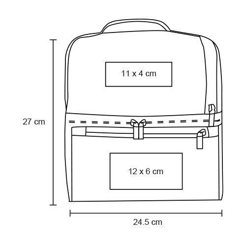 lonchera en la parte superior y hielera en la parte inferior, 1 bolsa frontal, con correa ajustable y asa superior.