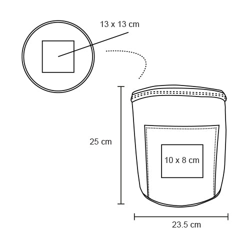 hielera circular de poliéster con interior plástificado, bolsa frontal y correa ajustable.