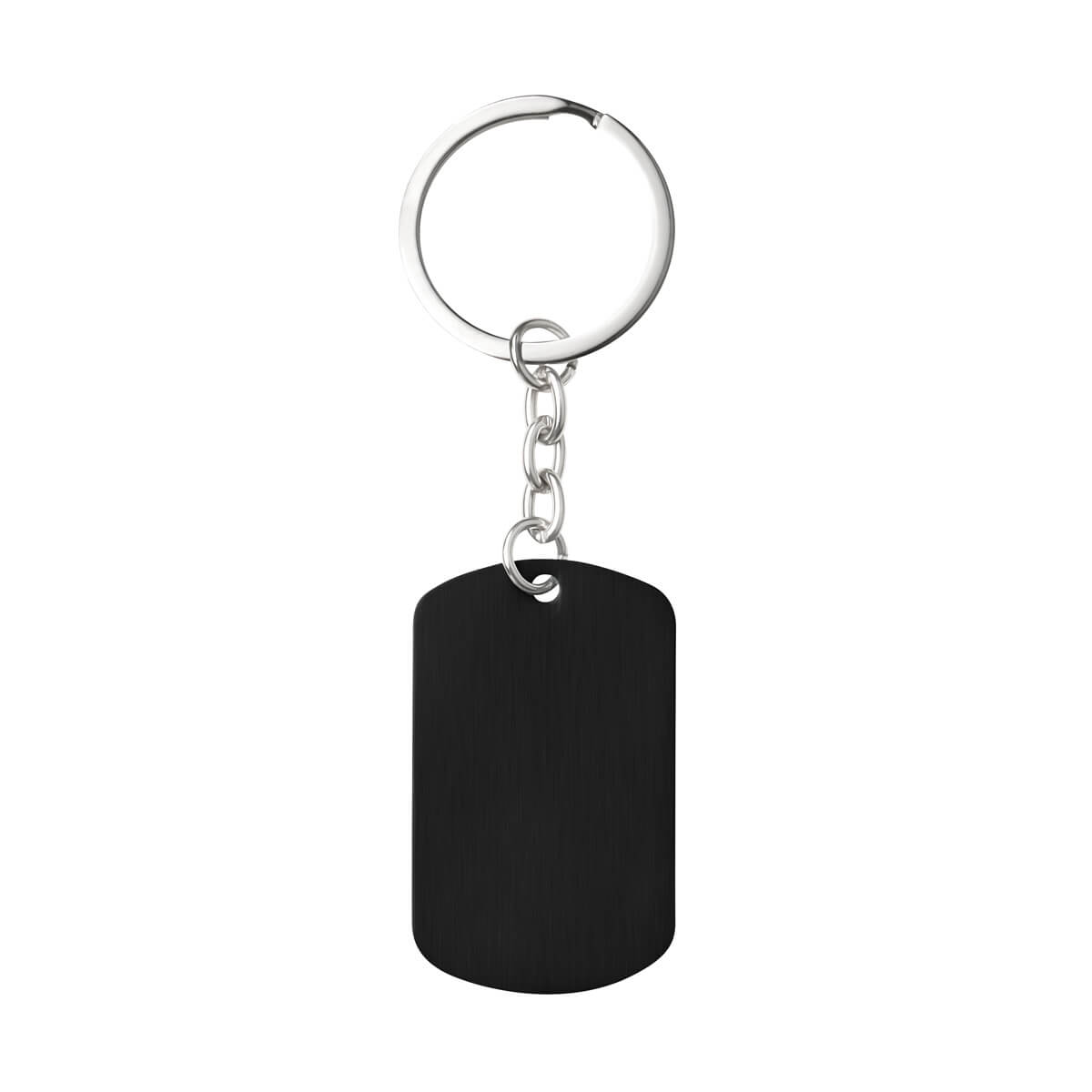 llavero con placa metálica tipo militar. diseño ligero, delgado y con acabado satinado.