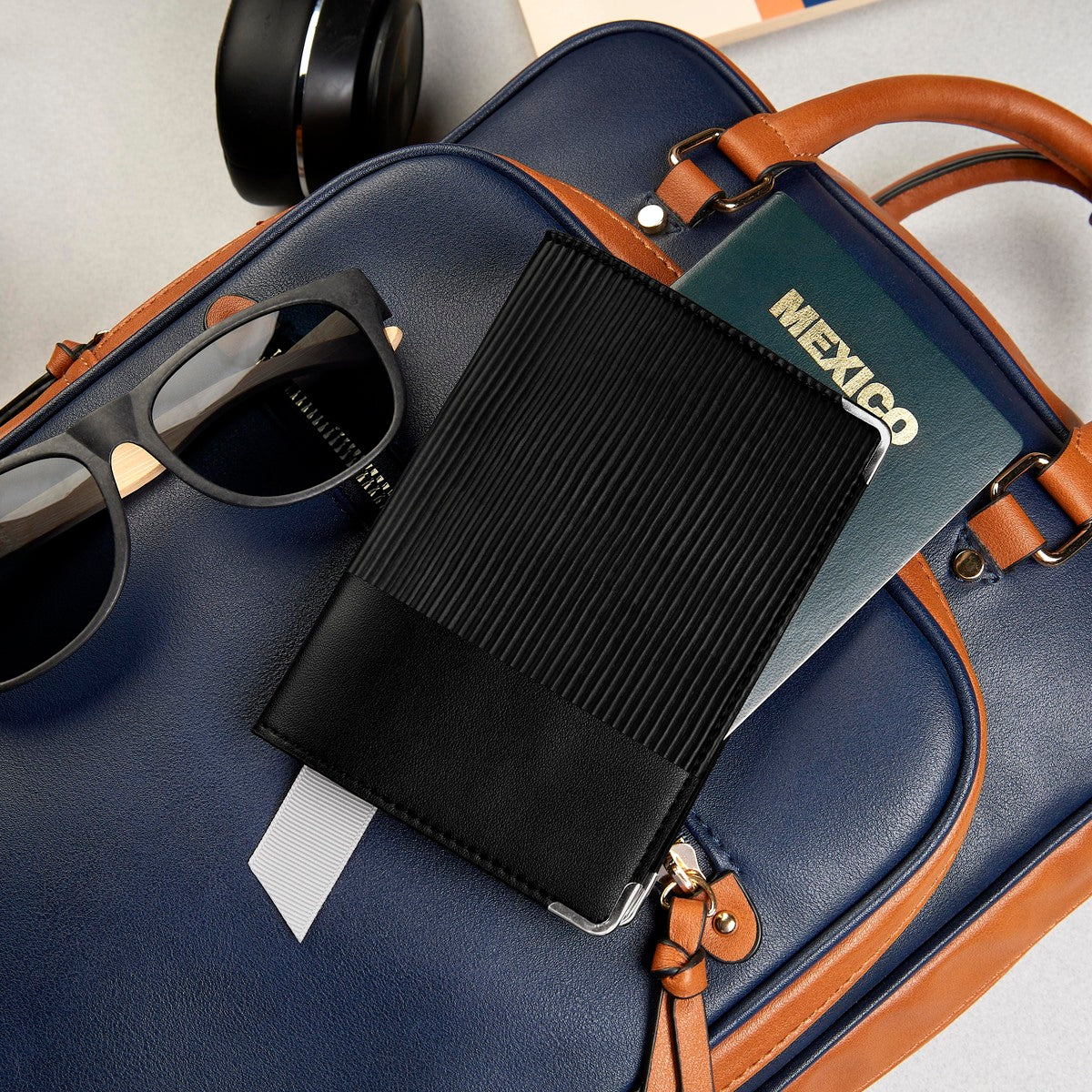 porta pasaporte de curpiel. las esquinas reforzadas con marcos metálicos no solo añaden un toque de distinción, sino que también protegen tu pasaporte de posibles daños. además, cuenta con un práctico separador de listón, que facilita el acceso rápido a tus documentos más importantes. tu compañero ideal para todos tus viajes.