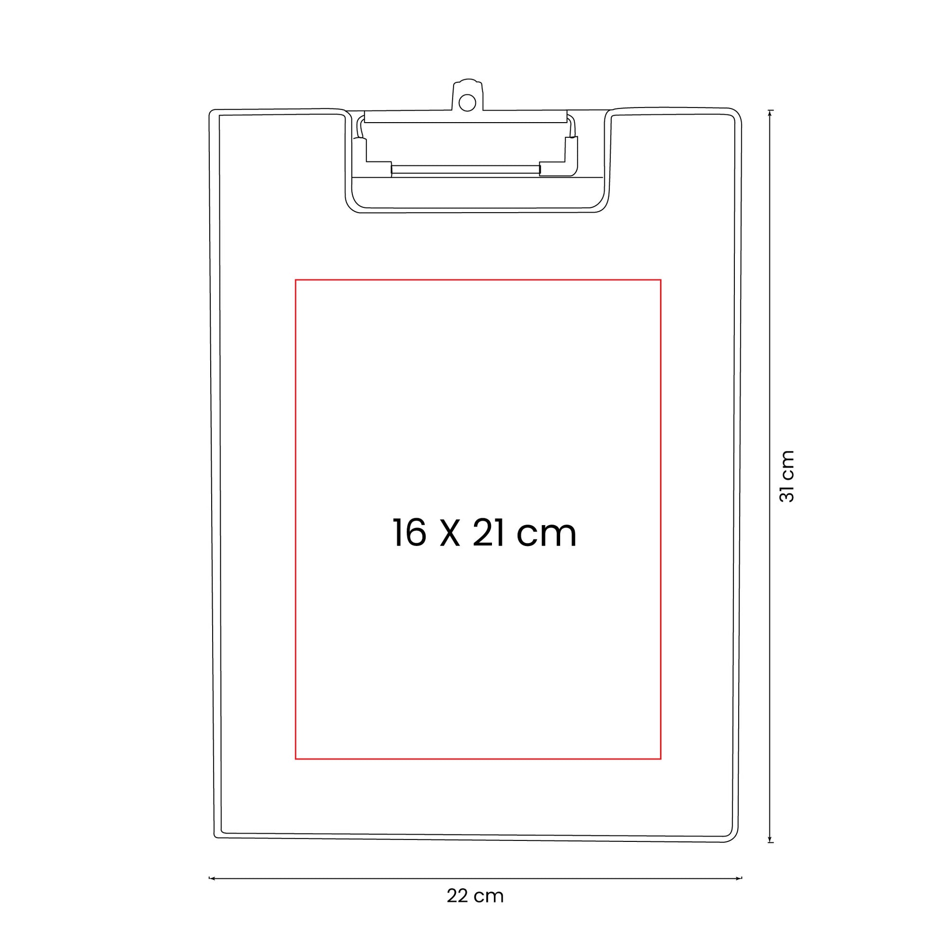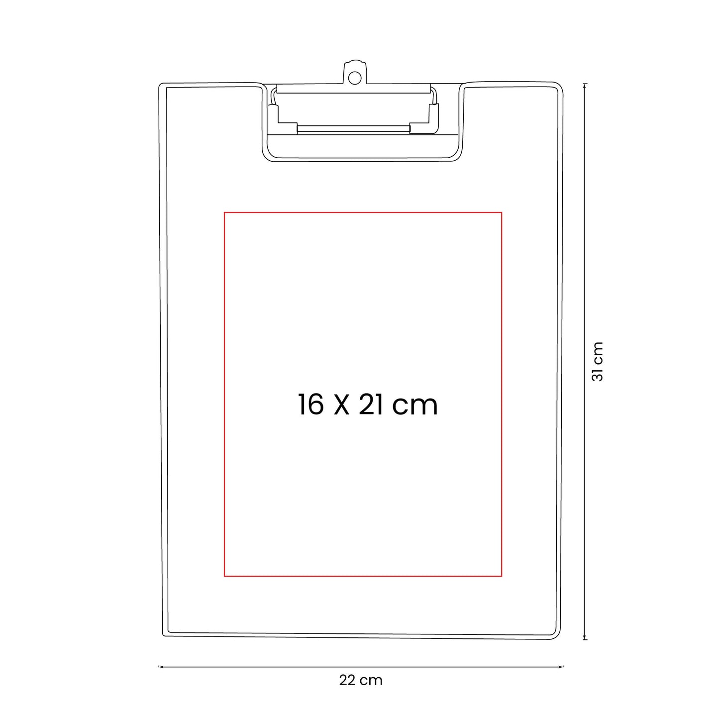 carpeta de plástico con clip metálico. incluye bloc de notas con 20 hojas. cuenta con compartimento plegable para sostener un bolígrafo. cuenta con una pequeña solapa interna para colocar hojas adicionales o tarjetas de manera ordenada y accesible.