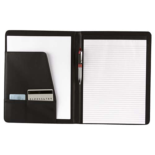 incluye block de raya tamaño a4 con 20 hojas, elástico para bolígrafo, compartimento para documentos y tarjetas. no incluye bolígrafo.
