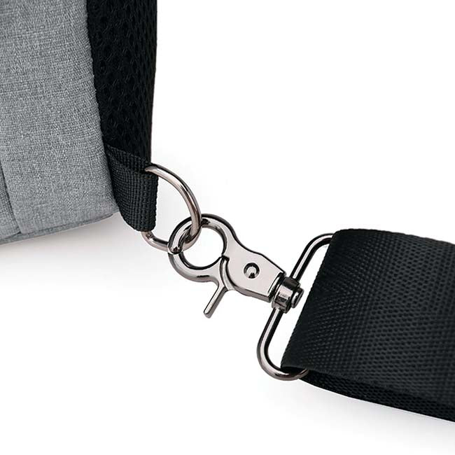 1.- Impermeable al agua 2.- Asa corta de mano 3.- Compartimiento frontal para guardar bebidas con cierre en jareta ajustable. 4.- Bolsillo al frente con cierrre en zipper. 5.- Organizadores interiores y compartimiento para tablet 6.- Correa en diseño lateral cruzado