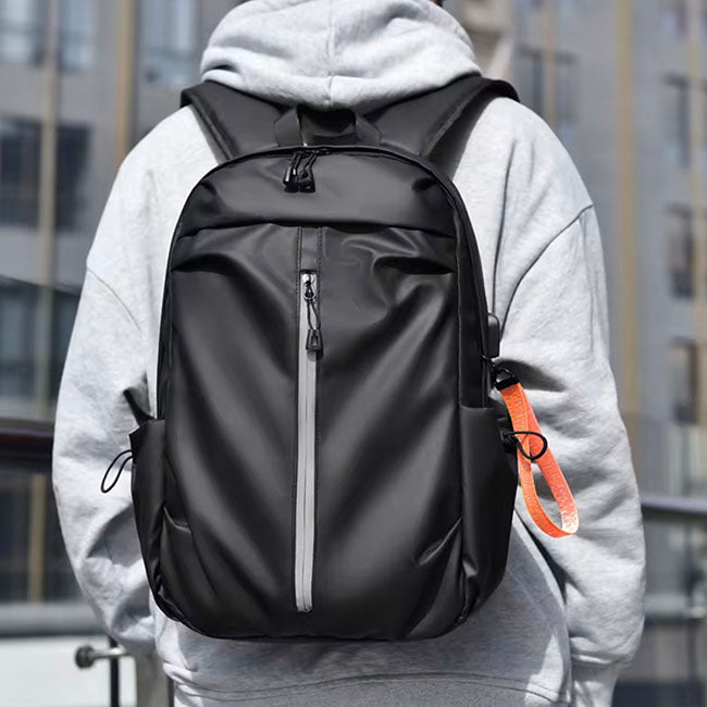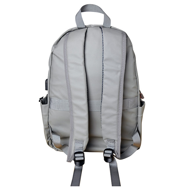 Backpack Kato Salida lateral para usb y para audífonos. Amplio compartimento al frente con cierre en zipper. Impermeable al agua Banda posterior que conecta al sistema trolley de equipajes. Correas ajustables y acojinadas. Prácticos bolsillos laterales con cierre ajustable. Incluye llavero para personalizar. Compartimento interior.