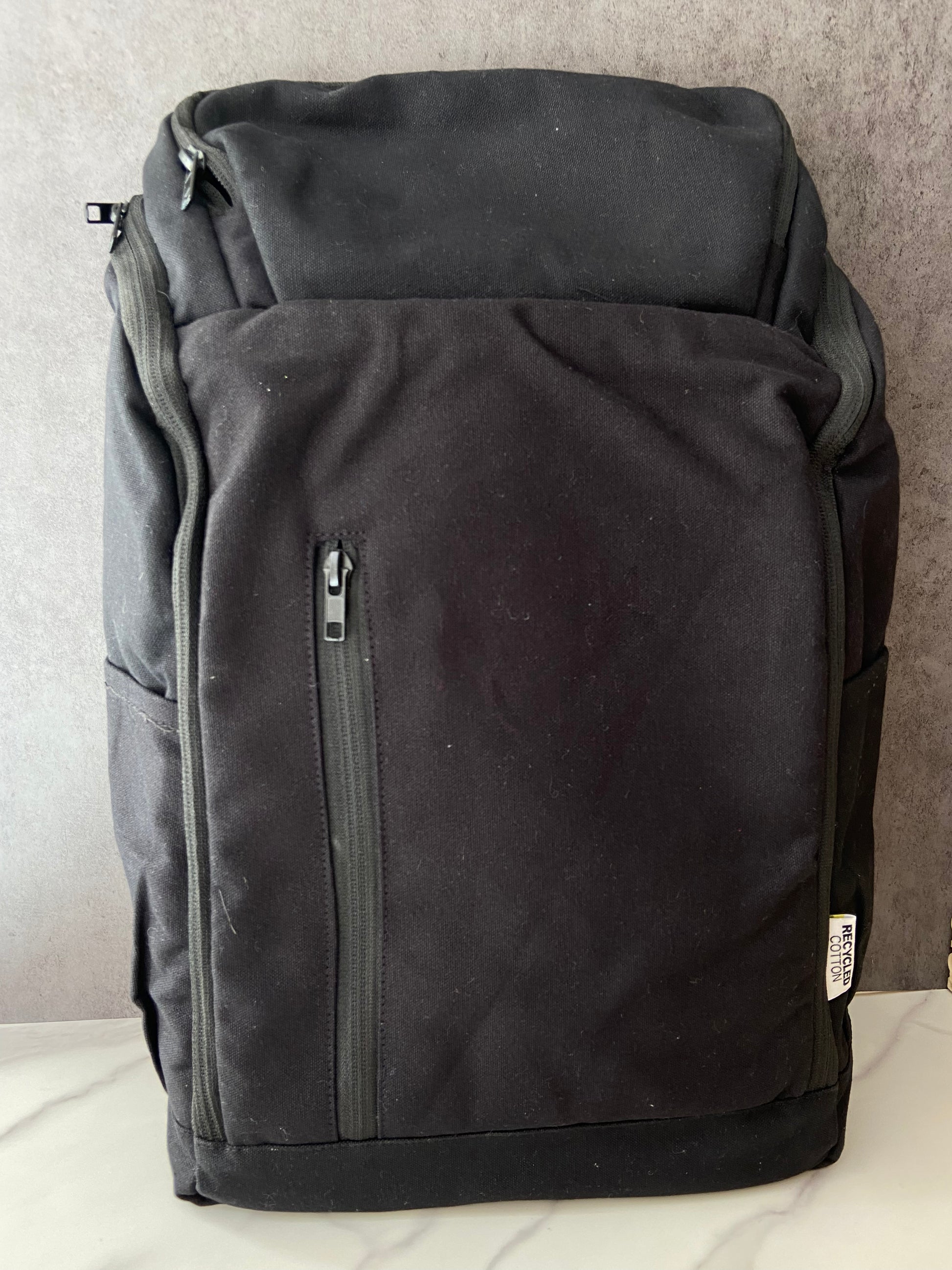 mochila ecológica de algodón reciclado, el balance perfecto entre sustentabilidad y funcionalidad, lo que la hace tu compañera perfecta para tu día a día. equipada con un compartimento acolchado para laptop hasta 15" en el bolsillo principal, un bolsillo frontal con cierre, un práctico bolsillo superior para objetos pequeños y dos bolsillos laterales para una organización impecable. además, su banda en la parte trasera te permite adaptarla fácilmente a tu trolley.