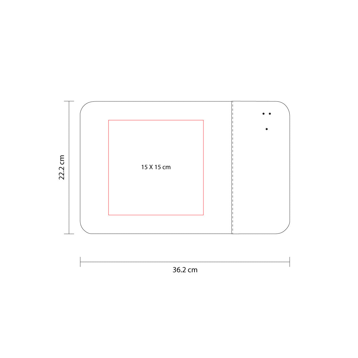 mouse pad con cargador inalámbrico de 10w (carga rápida). incluye 3 leds indicadores de carga y cable auxiliar tipo c de 1m.