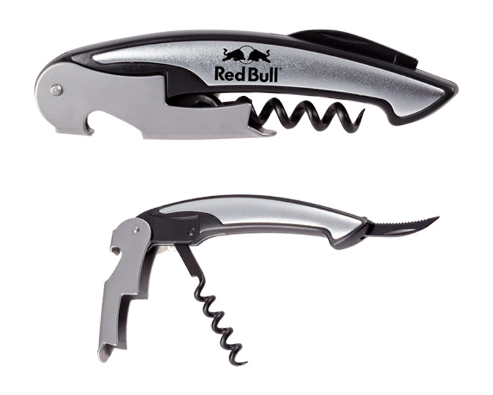 sacacorchos con destapador y navaja de acero inoxidable. presentación: caja blanca.