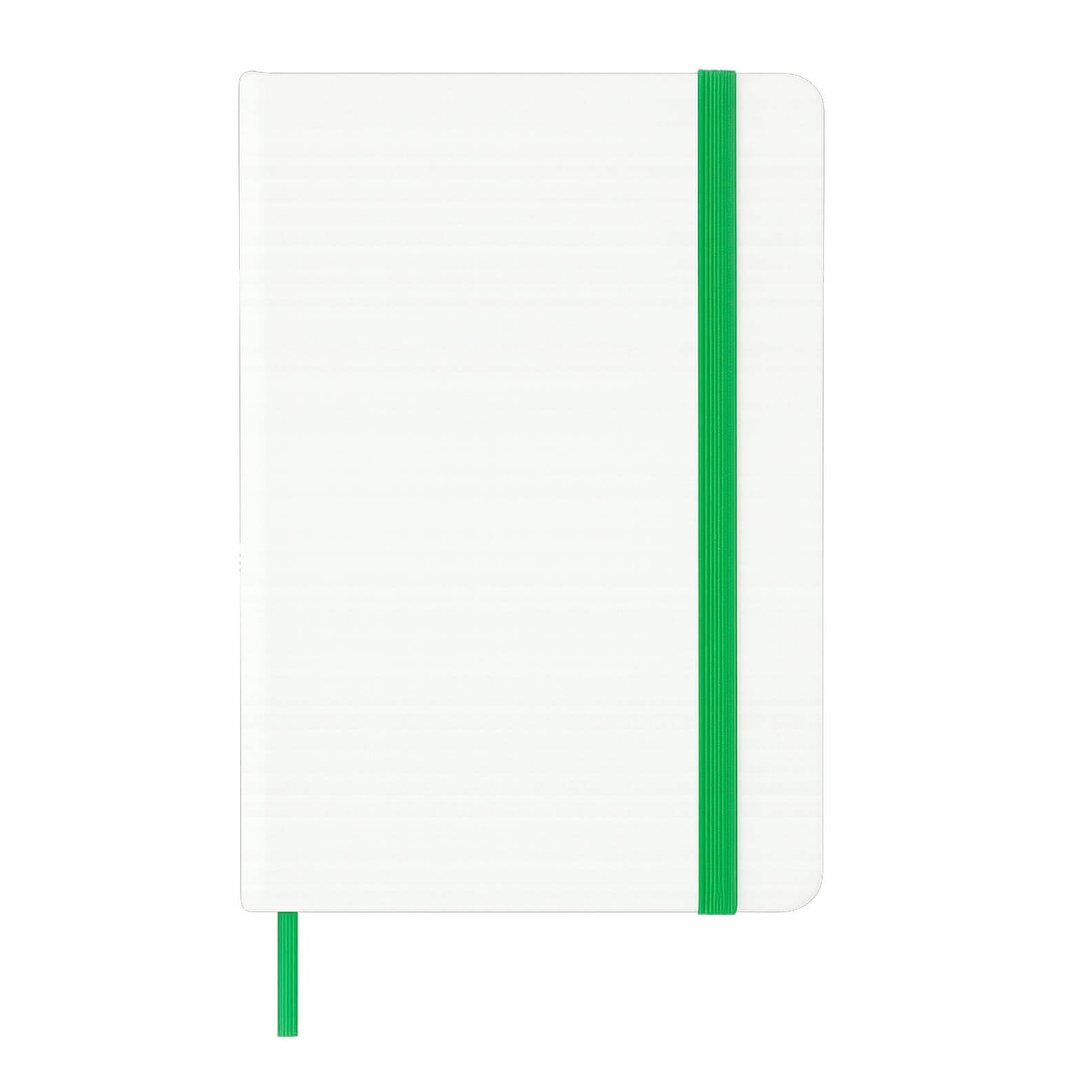 mini libreta de poliuretano con 80 hojas de raya y banda elástica para sujetar cubierta.