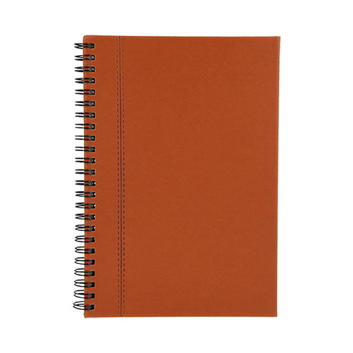 libreta de poliuretano con espiral metálico y 70 hojas rayadas.