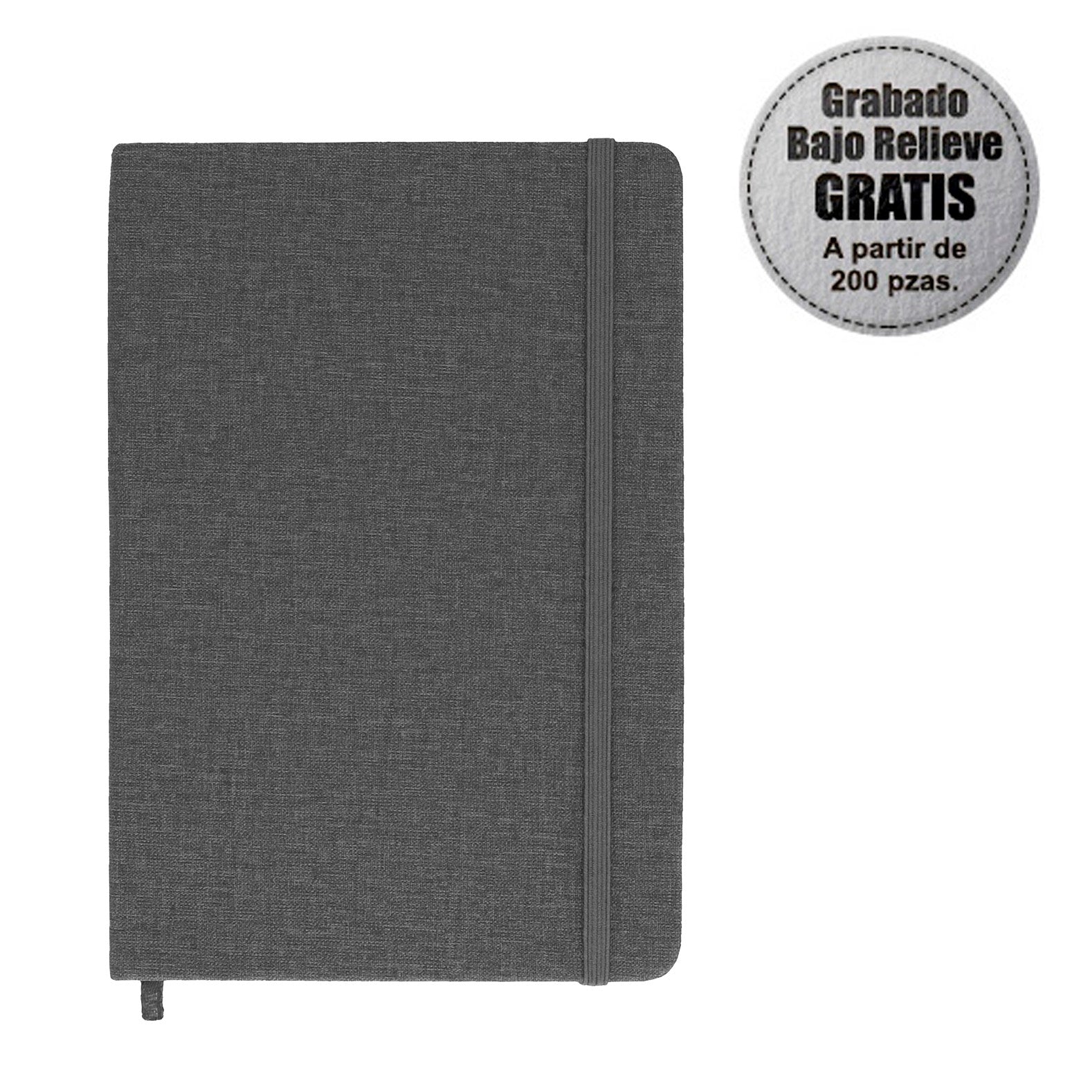 libreta de poliuretano, banda elástica para sujetar cubierta y separador, con 90 hojas rayadas.