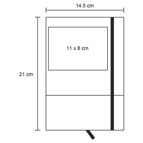 libreta de poliuretano con detalle de corcho, banda elástica, 90 hojas rayadas y separador.