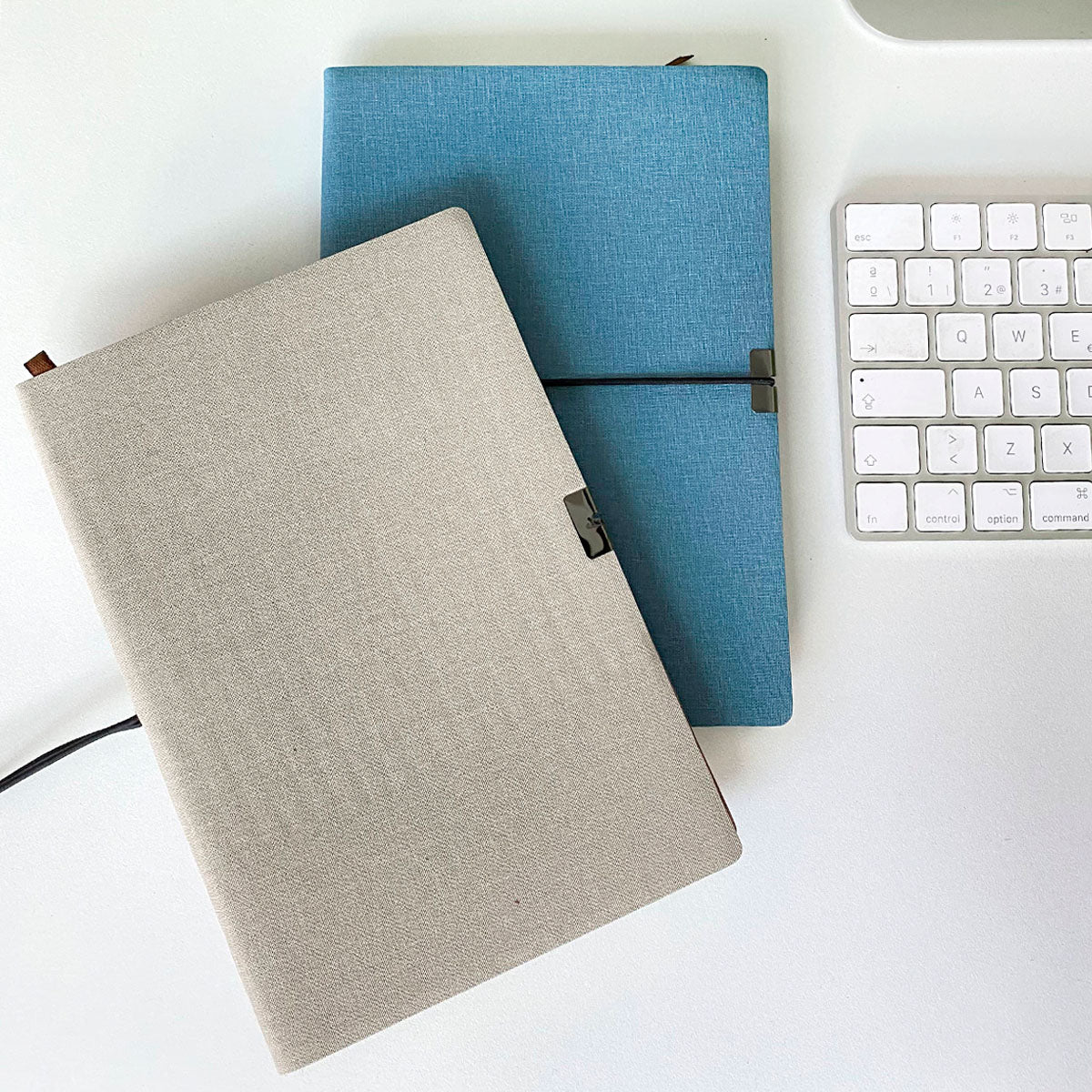 libreta de poliuretano con pasta texturizada, 96 hojas rayadas, resorte a la mitad y separador.