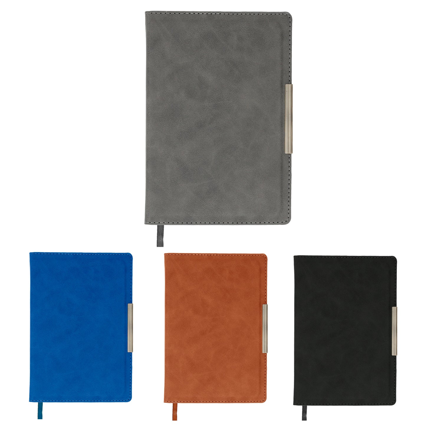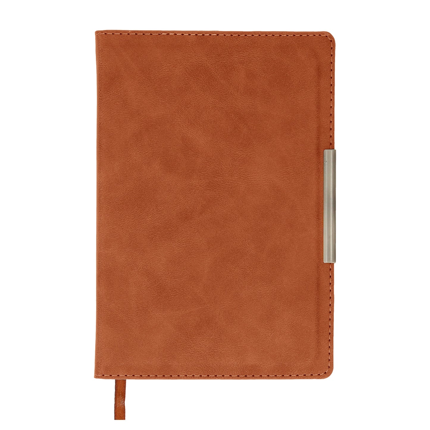 libreta curpiel con 96 hojas rayadas, separador y filo metálico.