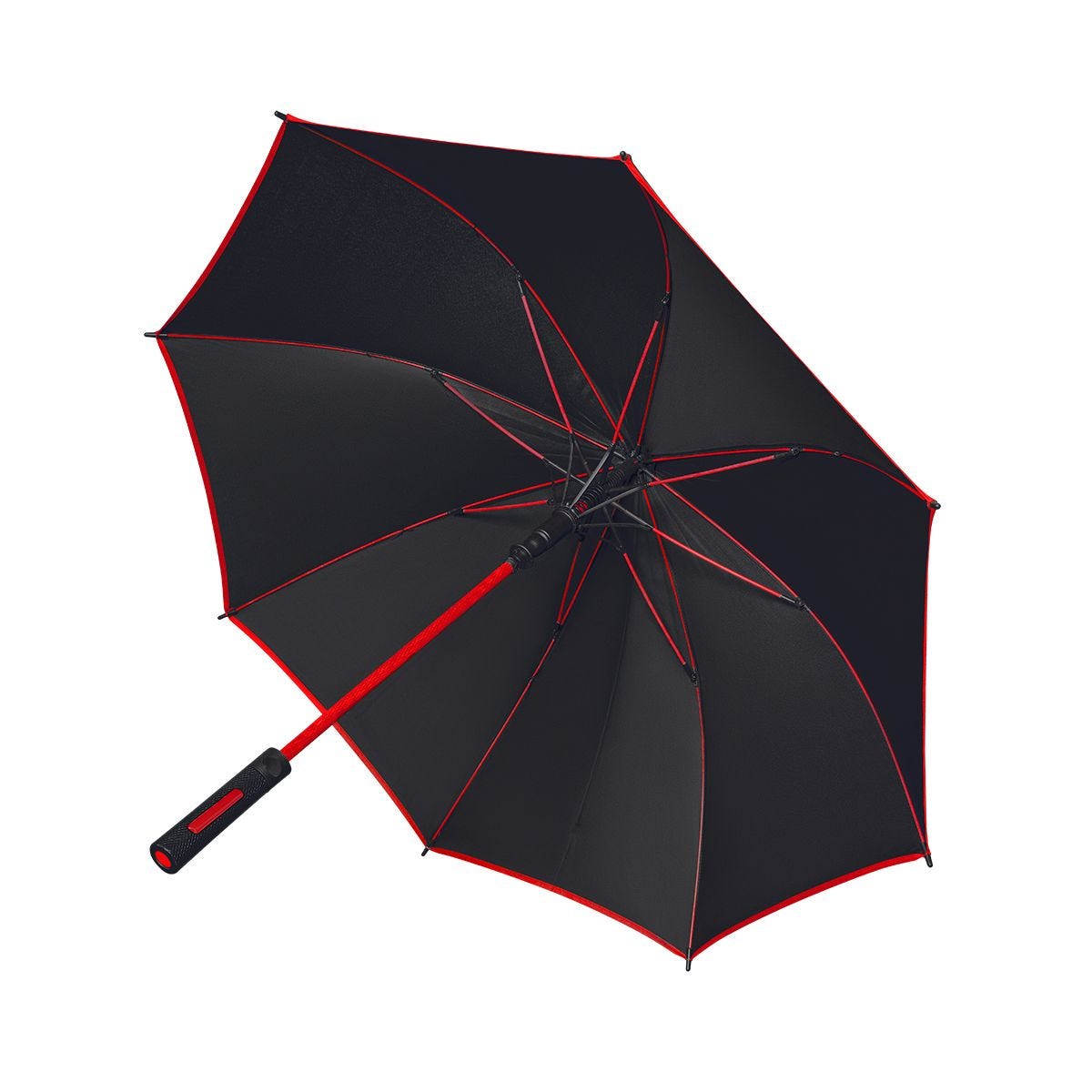 automático. 8 paneles y mango de plástico. marco de fibra de vidrio y bies de color que hacen juego con el marco y el mango. incluye funda con agarradera.
