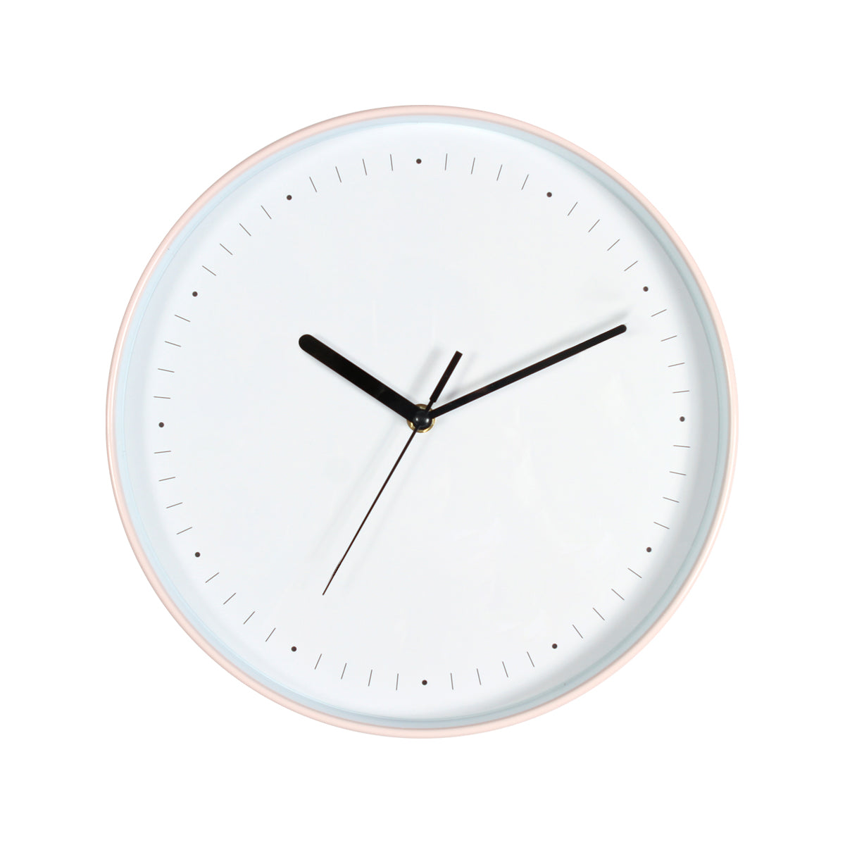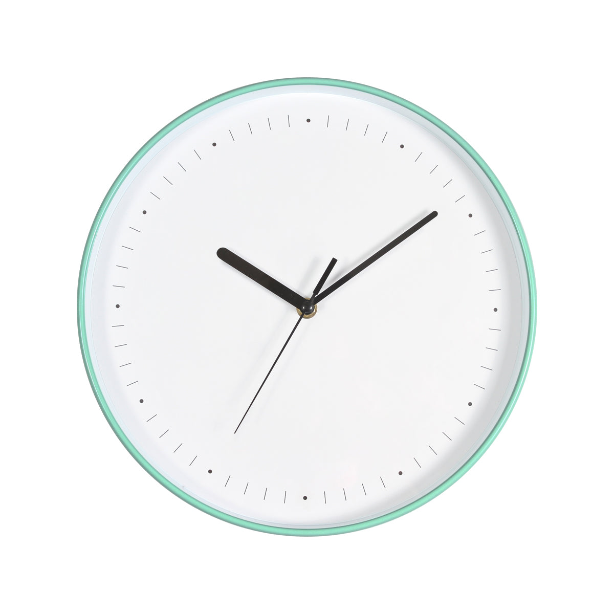 reloj de pared con marco de pp en colores pastel, con carátula blanca y manecillas negras. incluye 1 batería aa y caja de cartón individual. cuenta con un diseño minimalista.