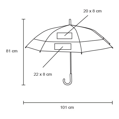 paraguas impermeable de apertura automática, 8 gajos, mango de plástico y broche de botón.