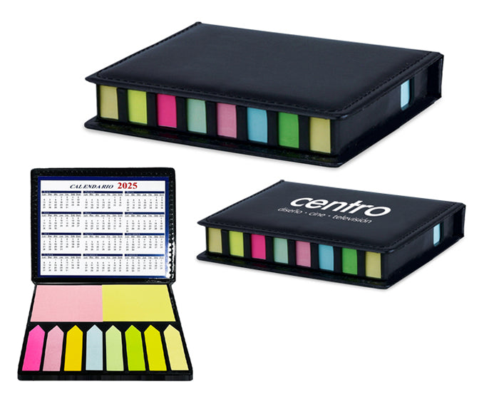 estuche con notas y banderas adhesivas. incluye calendario para el año en curso y el siguiente. presentación: caja en color blanco.