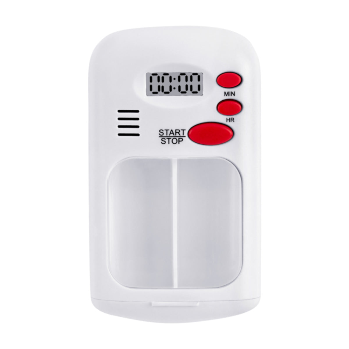 pastillero con alarma con múltiples repeticiones (duración de 30 segundos), programación de horas y 2 compartimientos para pastillas.
