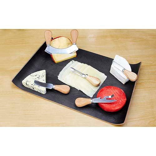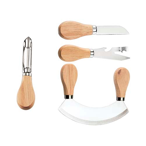 set con 5 cuchillos para quesos y estuche. incluye caja individual. la madera es un producto natural el cual puede presentar variaciones en tonalidades y vetas.