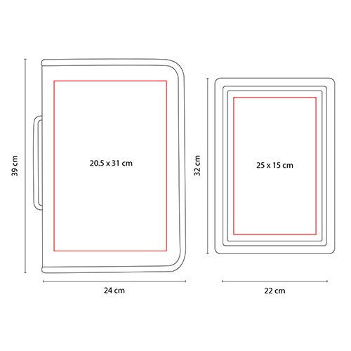 área de impresión: 16 x 25 cm estuche / 10 x 15 cm tabla