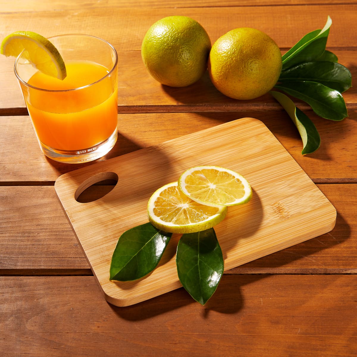 tabla para picar hecha de bambú. tiene un tamaño compacto perfecto para espacios reducidos en la cocina. cuenta con orificio en una de las esquinas que permite colgarla fácilmente cuando no está en uso. incluye caja individual. la madera es un producto natural el cual puede presentar variaciones en tonalidades y vetas.