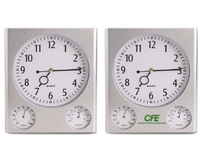 reloj cuadrado de pared, con medidor de humedad y temperatura. utiliza una batería aaa (no incluida). presentación: caja en color blanco.