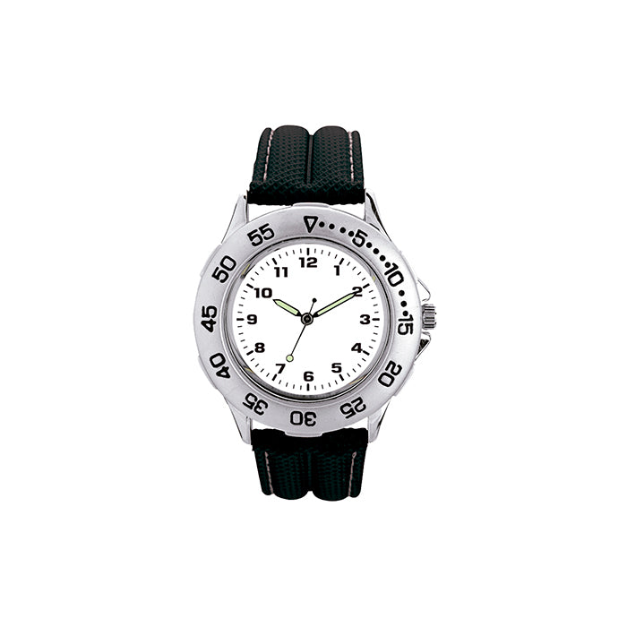 reloj con caja metálica, dial en arillo giratorio y correa de plástico. incluye estuche metálico.