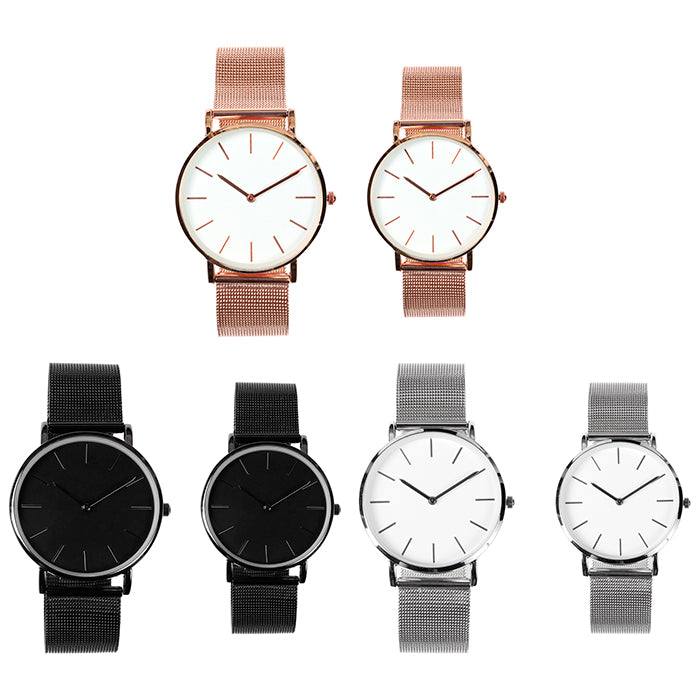 reloj de pulso con caja metálica y extensible de red, disponible para dama y caballero, maquinaria metálica japonesa de alta precisión. incluye estuche individual.