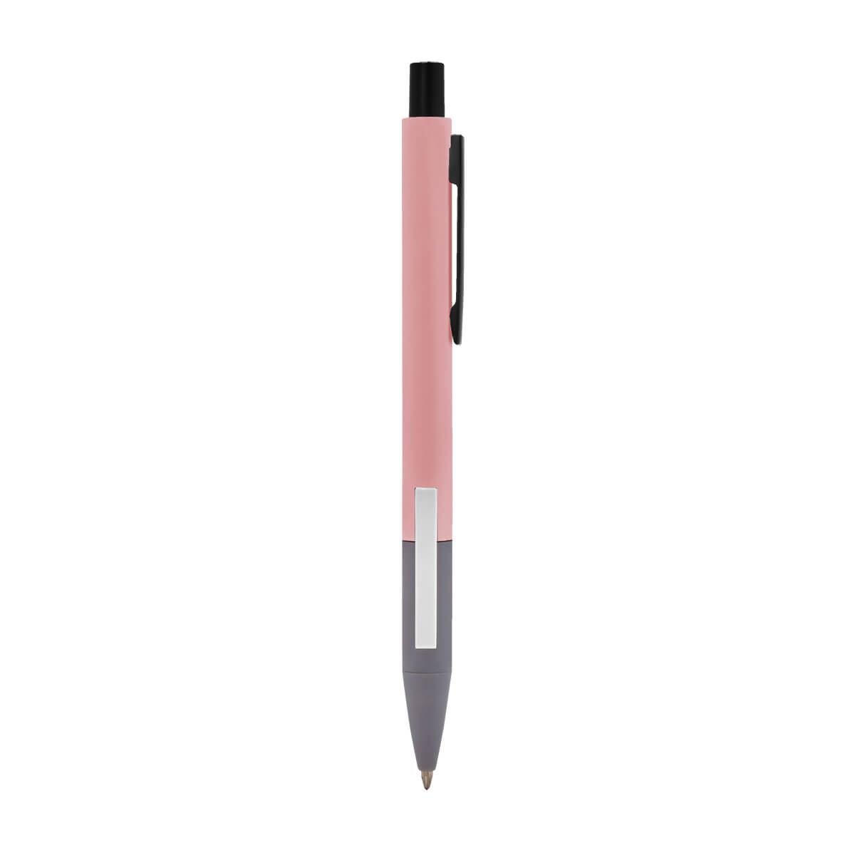 bolígrafo con barril combinado en color y punta gris. botón y clip color negro. grip de plástico en color. mecanismo push. incluye funda.