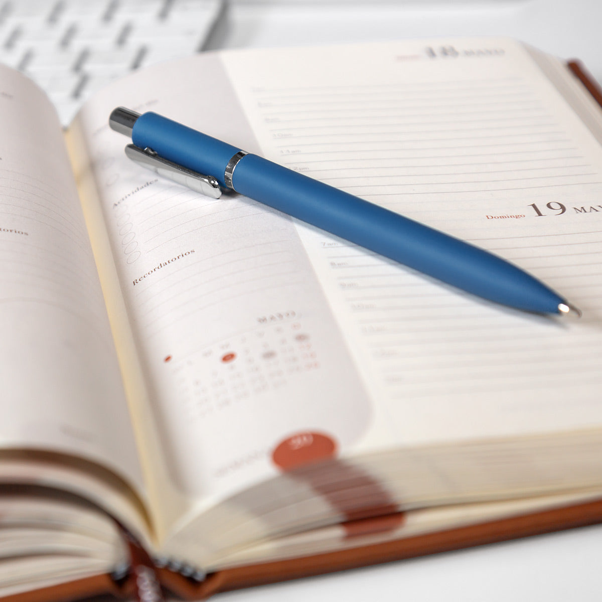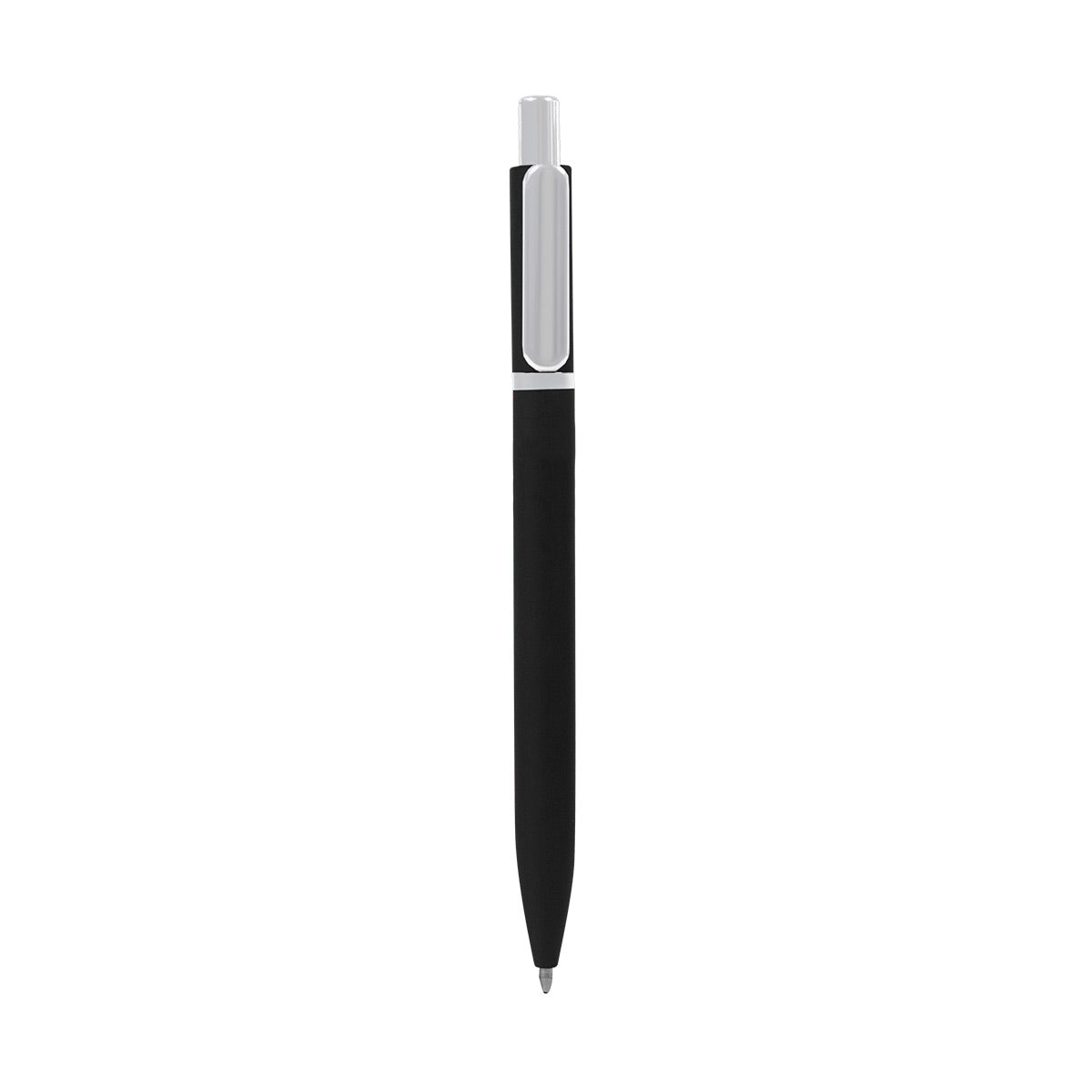 bolígrafo con terminado rubber y clip metalizado. mecanismo pulsador.